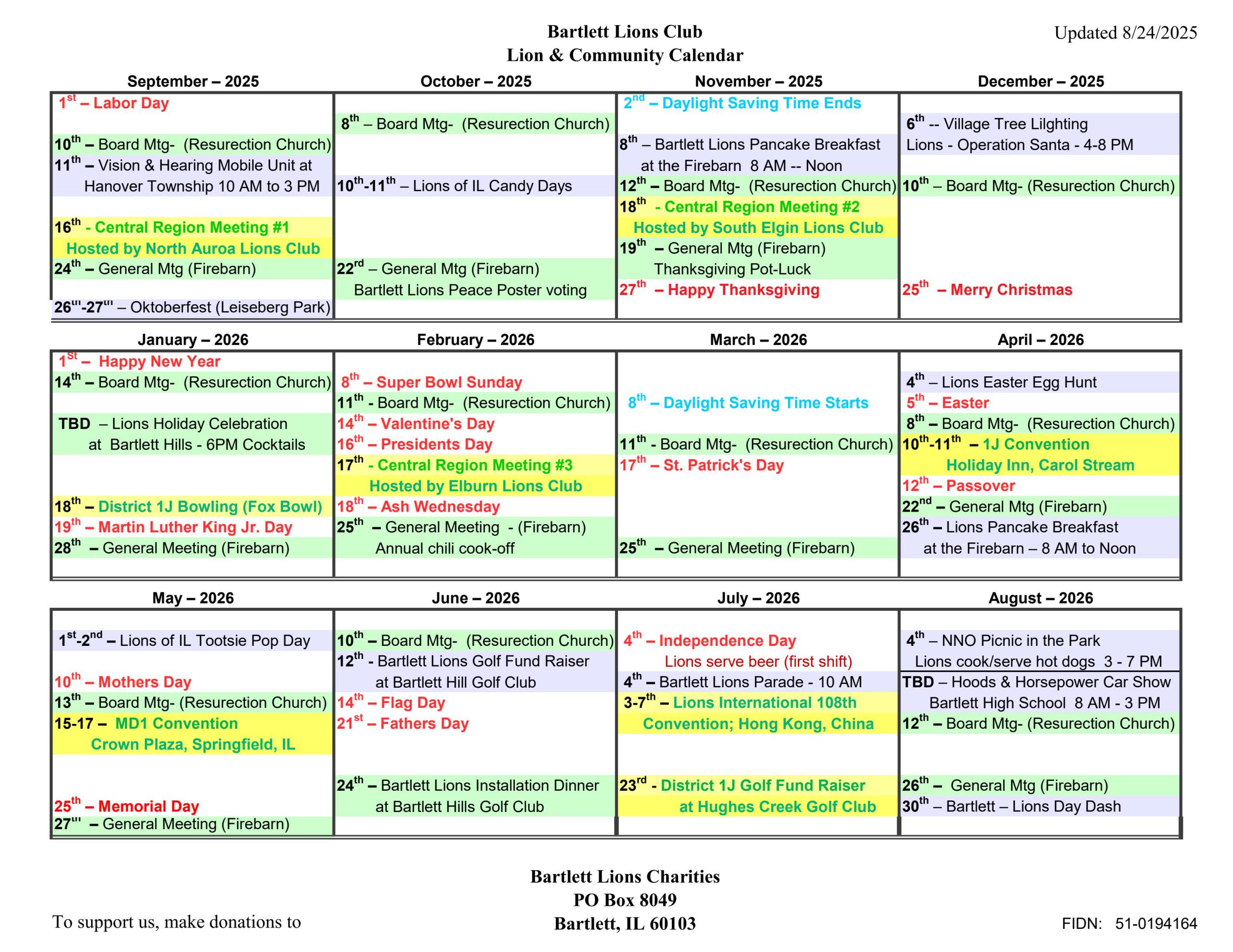 Sept-Oct-Nov 2025 Lions Calendar